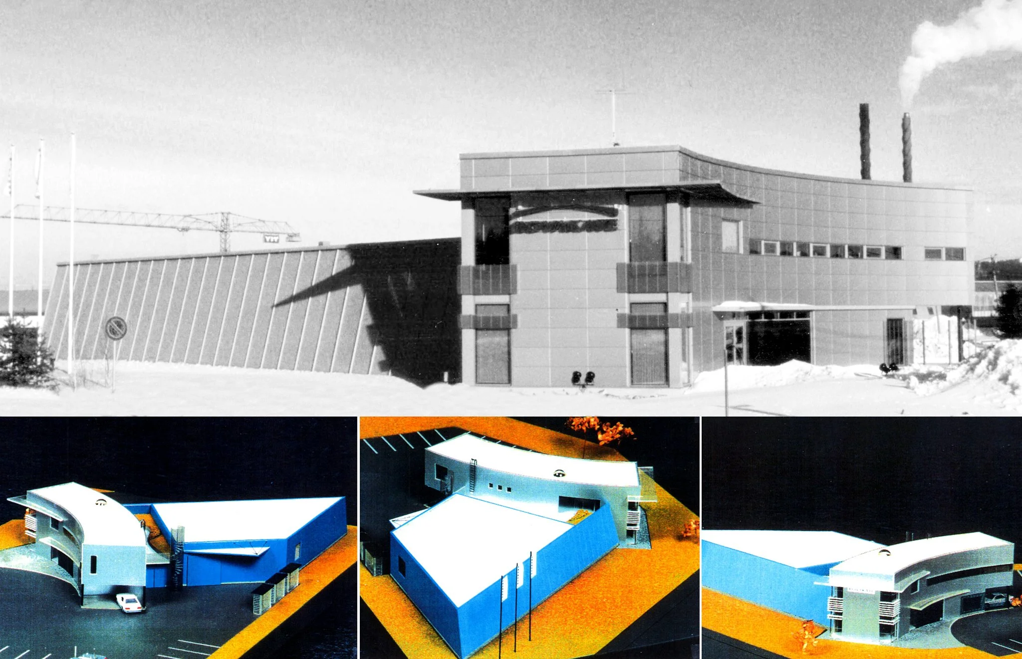 Rovakate OY is a roofing company. The shape of the building results from the combination of the shape of the lot and the need for a big warehouse leaving the office part with relatively little volume. An important goal of the design was to use techniques and proportions which enable the office part to look bigger and stand out.